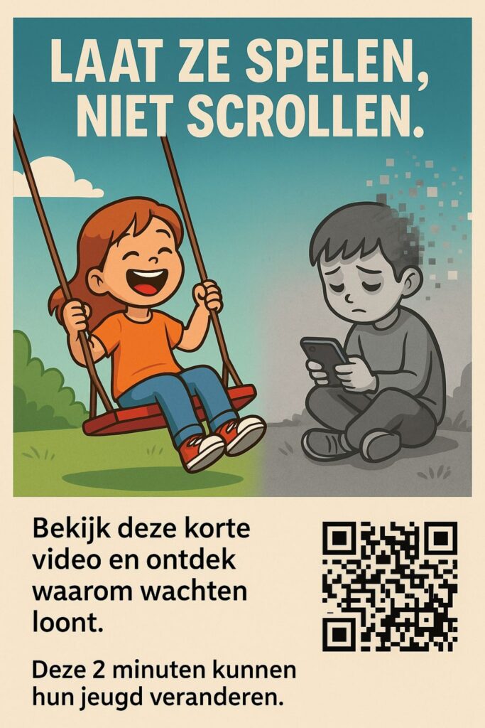 Belangrijk: We begrijpen dat dit een complex onderwerp is en we zijn hier niet om te oordelen over de beslissingen van andere ouders. Wij geloven dat we allemaal in een onmogelijke situatie zijn gebracht door techbedrijven, en dat we alleen door samen te komen de sociale norm kunnen veranderen. Hoe kan het ook? Kunnen we de groepsdruk doorbreken? Biedt de good old Nokia een alternatief? Of heb je andere tips? Wees welkom in deze groep! Met deze QR-code of via deze link kun je je aanmelden: https://chat.whatsapp.com/ICYwyOafV1jKkvThoshyfo?mode=gi_t