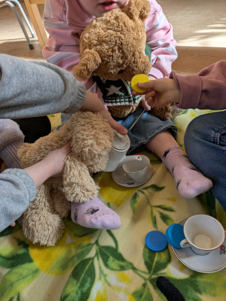Deze eerste periode stond vooral in het teken van ontdekken en wennen. De eerste dagen was het voor de kinderen nog fijn om een knuffel bij zich te hebben. De kinderen hebben zichzelf en hun knuffel voorgesteld aan de groep. Ook is er een gezellig “theekransje” met het porseleinen servies gehouden. De groepsvorming verloopt heel natuurlijk.