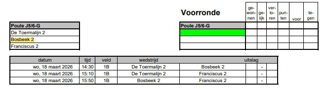 18 maart 2026: 15.50 uur Bosbeek 2 – Franciscus 2