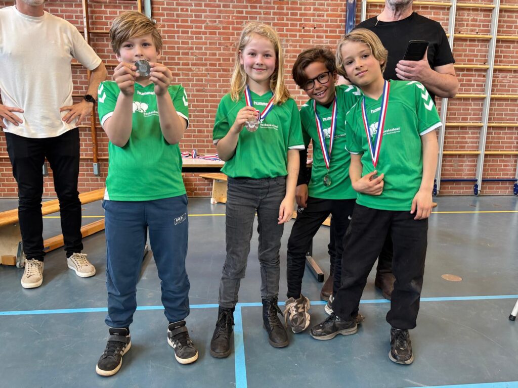 Het welpenteam van de Bosbeekschool uit groep 5 is op het provinciaal damtoernooi in Zaandam vierde geworden (eigenlijk gedeeld derde)! Dat is een mooie prestatie. Het was een gezellig gebeuren in Zaandam. Ze hebben zich geplaatst voor de halve finale , maar zien hier vanwege de reistijd naar de eventuele finale in Dedemsvaart vanaf.